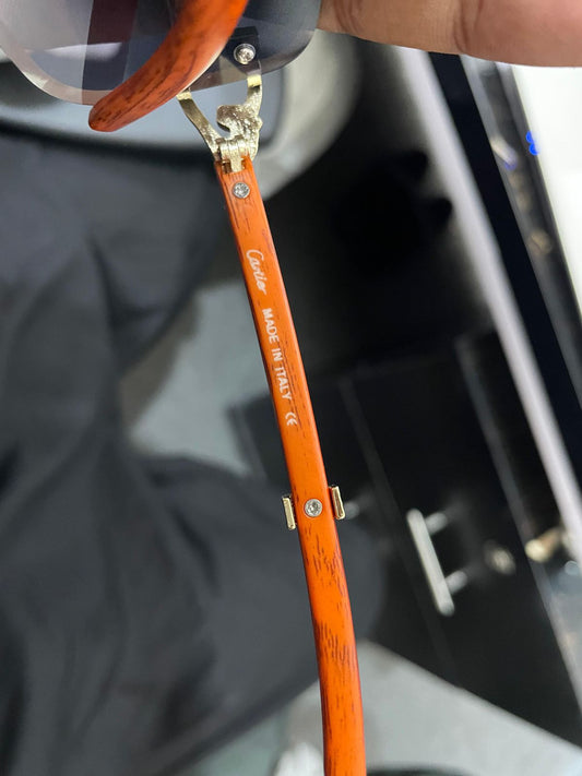 Cartier Sunglasses Wooden Texture With Brand Name